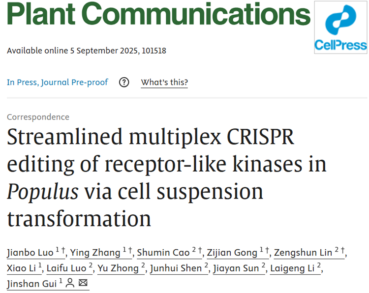近日,浙江農林大學桂金山教授團隊在國際知名期刊《Plant Communications》上發表了題為“Streamlined multiplex CRISPR editing of receptor-like kinases inPopulusvi...